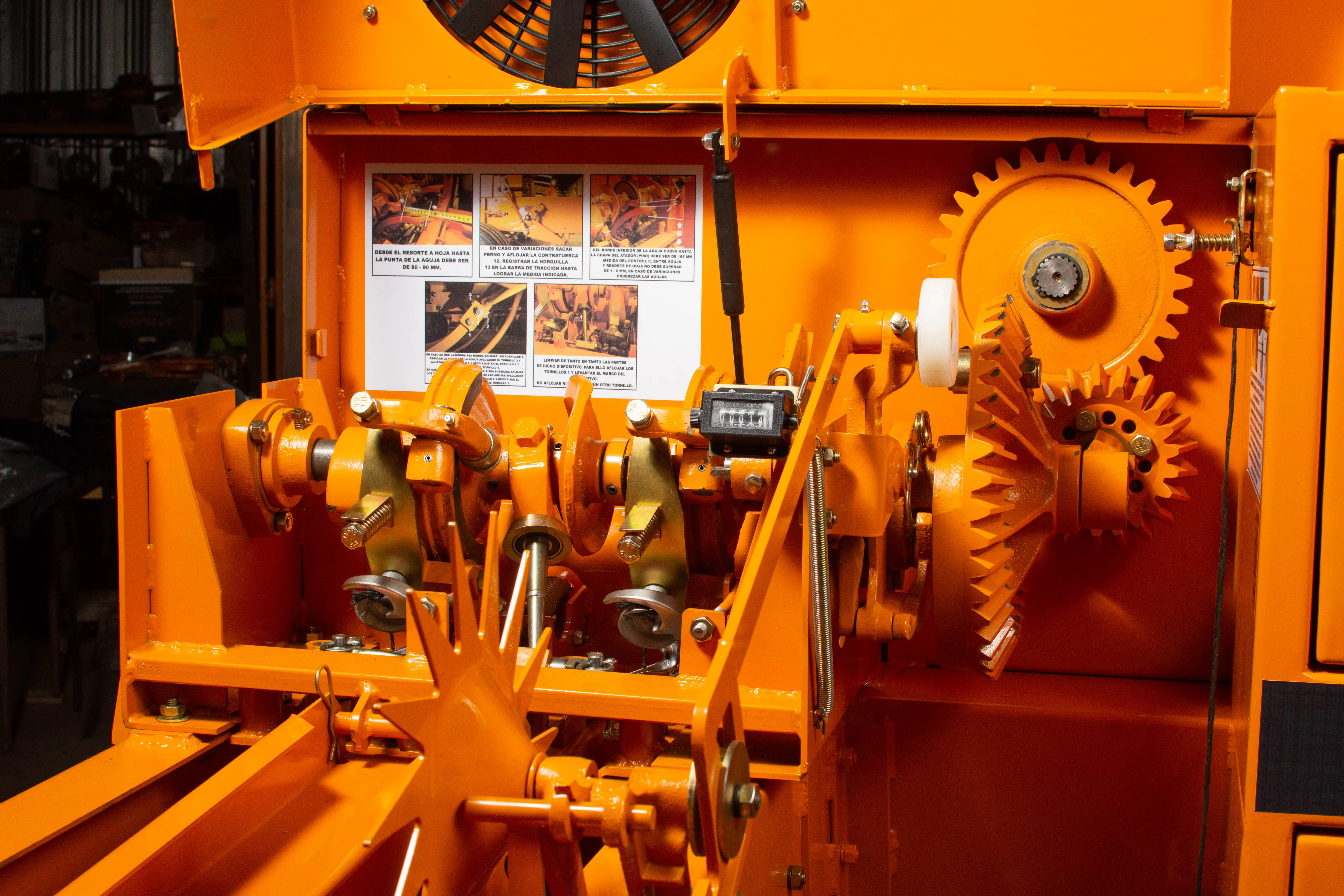 Con un sistema de doble nudo especial para realizar fardos pesados, su atador a hilo automático, cuenta con un electroventilador para la limpieza del atador.