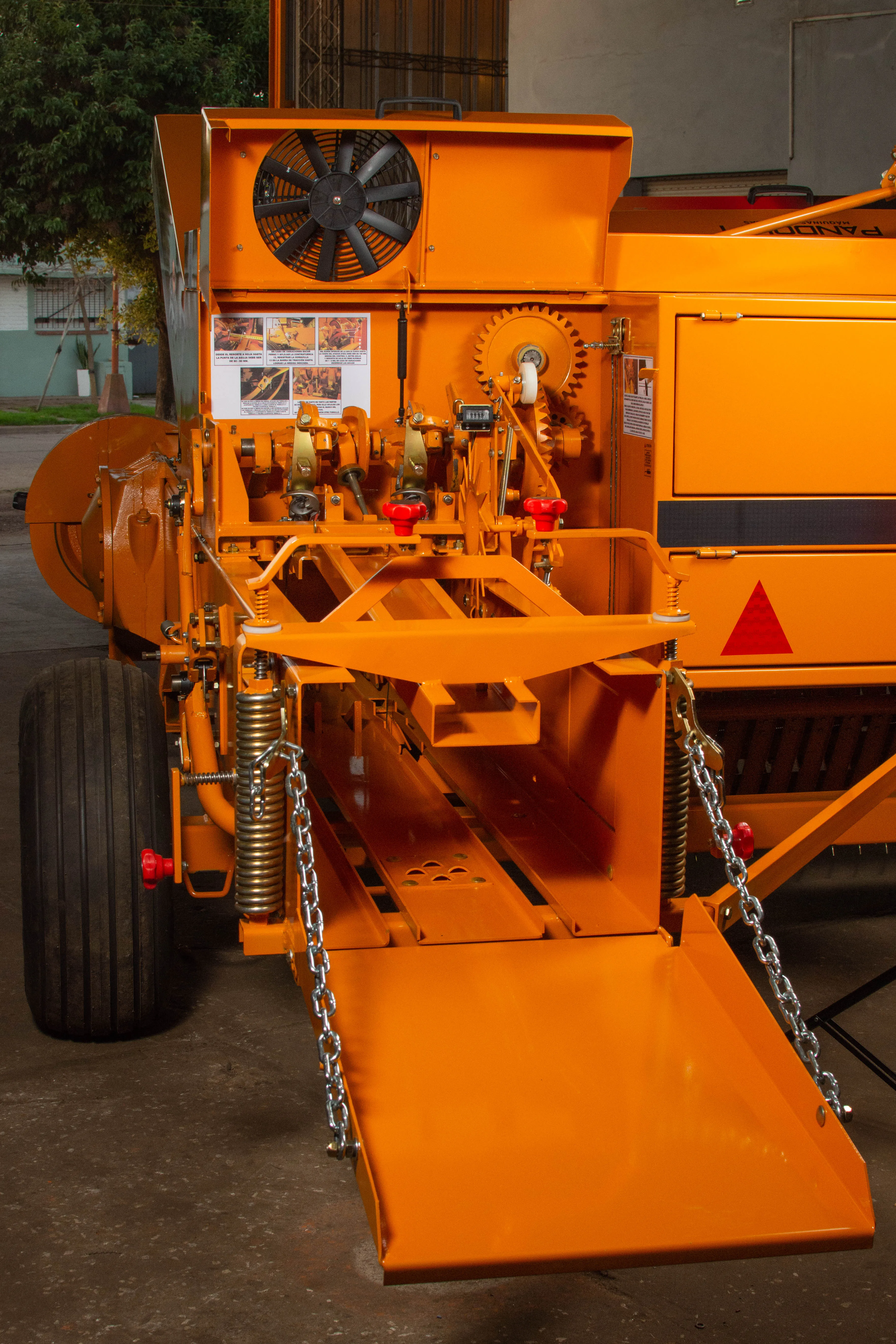 La cámara de prensado cuenta con un pistón montado sobre rodillos de acero tratados, intercambiables. Las dimensiones de compresión son 360 x 460 (Longitud del fardo de 40 cm a 1.20 mts).